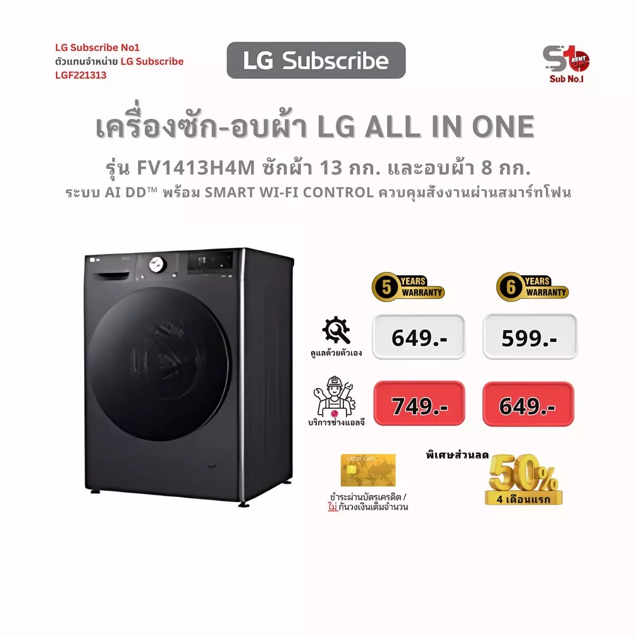 รุ่น FV1413H4M ซักผ้า 13 กก. และอบผ้า 8 กก. ระบบ AI DD™ พร้อม SMART WI-FI CONTROL ควบคุมสังงานผ่านสมาร์ทโฟน